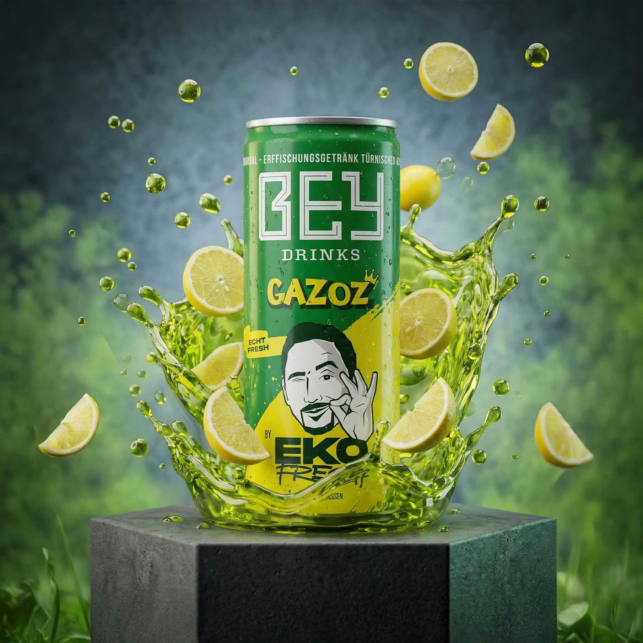 BEY Gazoz by Eko Fresh – der Rapper und Unternehmer Eko Fresh bringt mit BEY Drinks den Geschmack seiner Kindheit zurück. Gazoz ist das traditionelle türkische Erfrischungsgetränk, das Generationen verbindet. Als Eko Fresh Getränk vereint BEY Gazoz Tradition und modernen Lifestyle – ein echtes Kultgetränk, neu gedacht für heute.